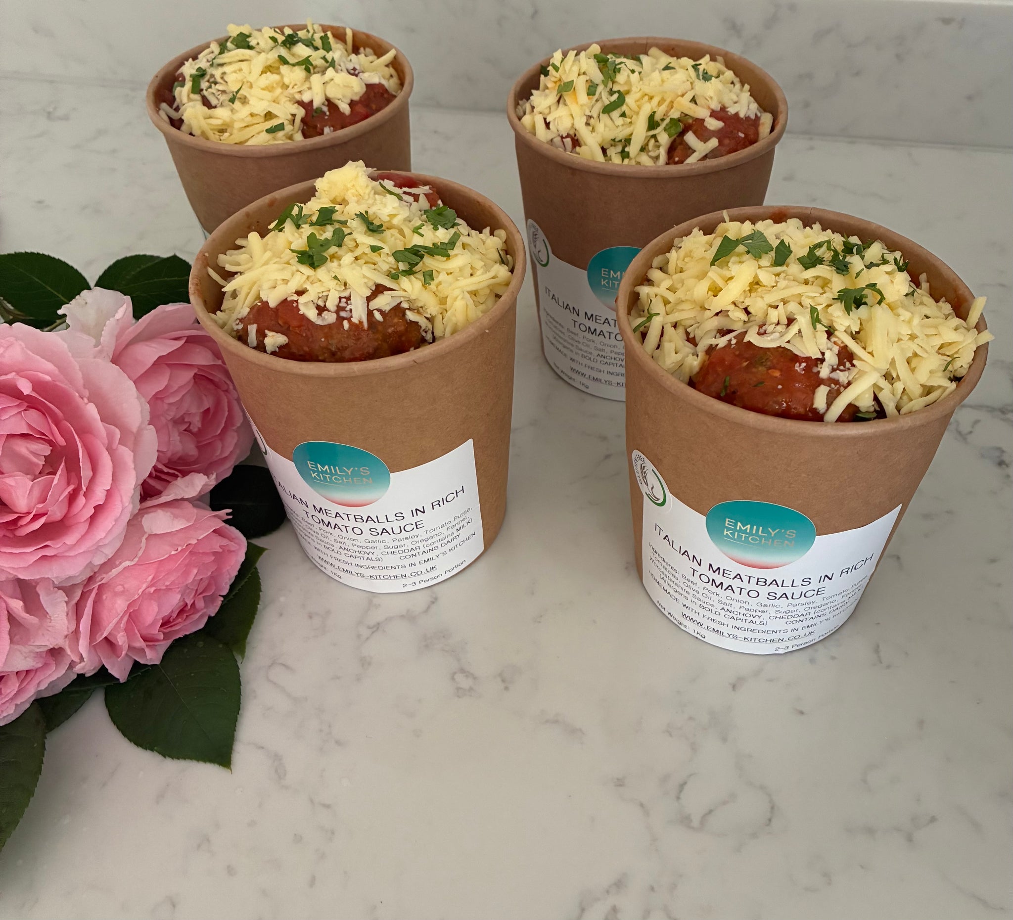 Generously sized and mouth-watering, our Italian Meatballs are air fried then gently poached in our house-made tomato sauce! Our tomatoes and shallots are home grown and organic; the whole dish is topped with a large handful of mature cheddar cheese.